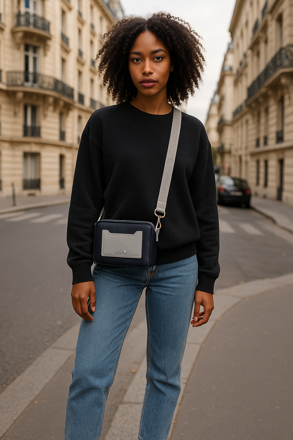 In Dior's contemporary vision, each accessory is conceived as a work of balance. The dialogue between form and color, between the texture of leather and the purity of metal, reflects a quest for absolute harmony. The choice of navy blue, a symbol of assurance and depth, is combined here with the gray hue, synonymous with calm and aesthetic intelligence, to create an object that is both strong and soothing.