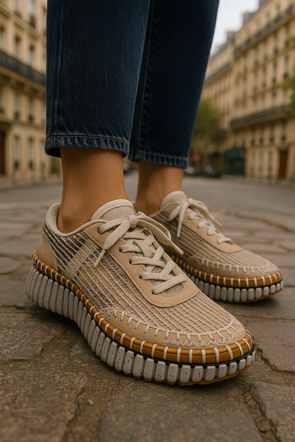 Au-delà de son allure visuelle forte, cette sneaker est une véritable interprétation artistique de la chaussure urbaine. Son design sculptural, presque architectural, en fait une pièce statement qui transcende les tendances passagères. La volonté de Hearst était claire : créer une sneaker audacieuse qui ne se contente pas d’habiller, mais qui véhicule un message – celui d’une mode luxueuse et responsable, où l’innovation s’allie à l’éthique.