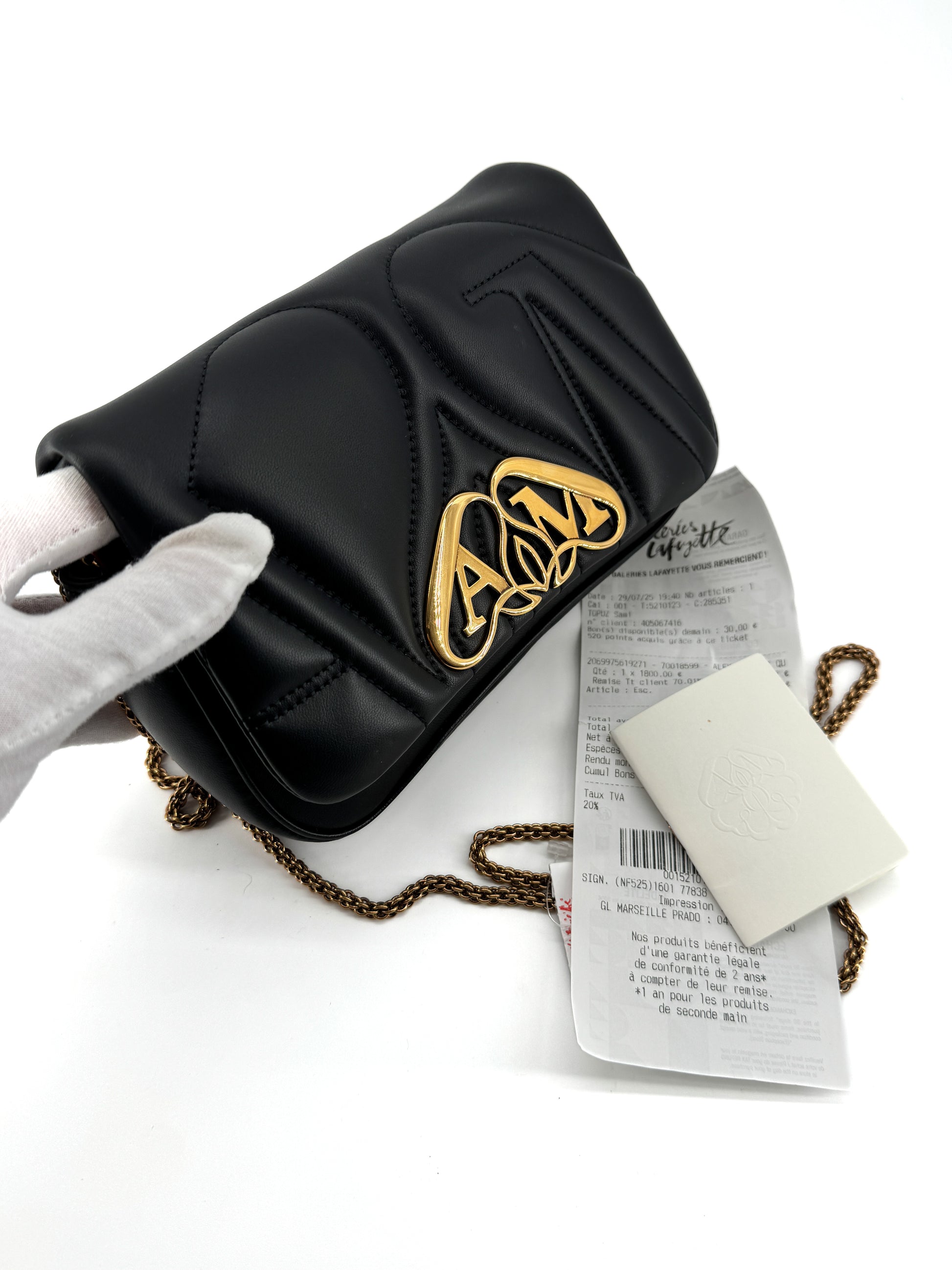 Sac Alexander McQueen “The Seal” en cuir d’agneau matelassé noir avec logo doré – Icône contemporaine de la maroquinerie de luxe