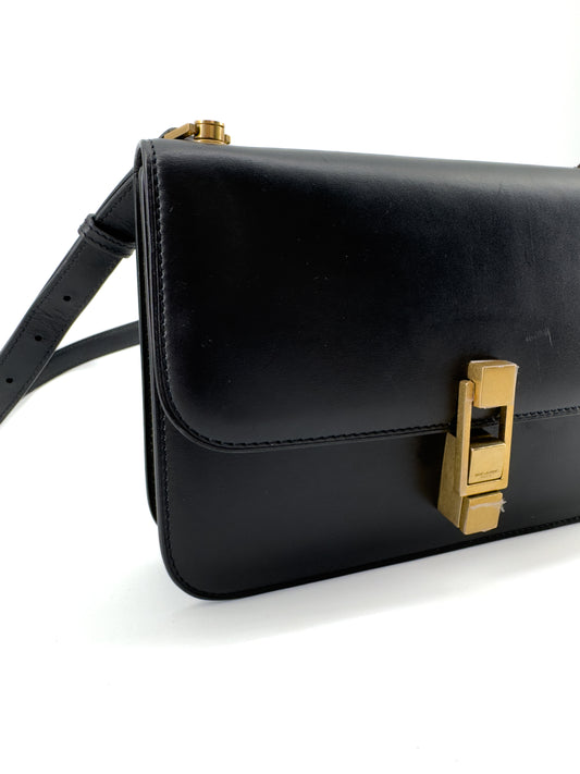 Sac Bandoulière Saint Laurent « Le Carré Satchel » en Cuir Noir — Élégance Architecturale et Intemporalité Parisienne